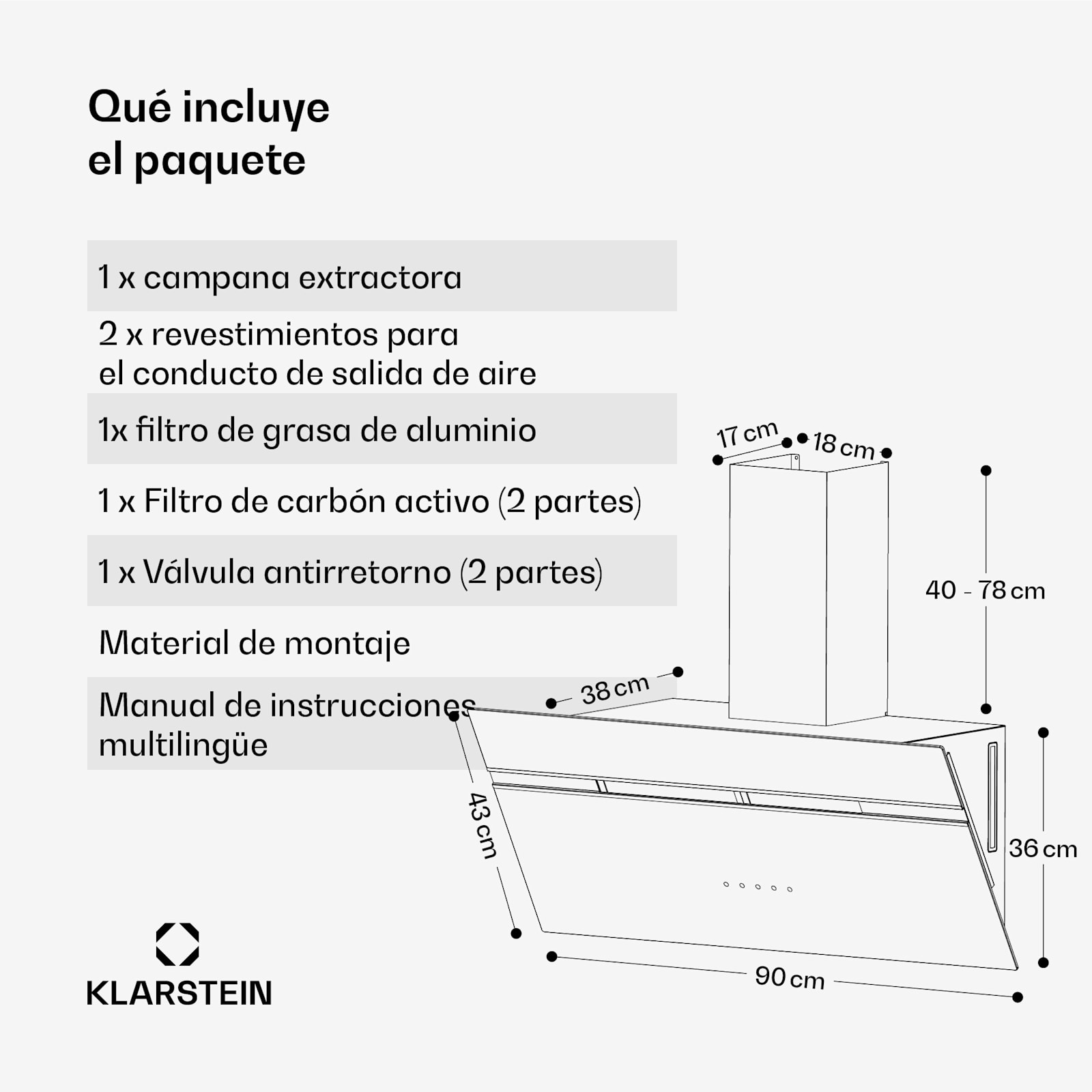 La campana extractora Alina de Klarstein elimina los humos y el caldo por encima de la placa de cocción. Con tres niveles de potencia, se puede ajustar fácilmente su rendimiento a la situación de cocción. El nivel de rendimiento más alto elimina hasta 615 m³/h de salida de la cocina y puede así hacer frente a la preparación de varios platos. Gracias a la tecnología más avanzada, el nivel de ruido y el consumo de energía se mantienen agradablemente bajos, con 54 dB y clase de eficiencia energética A.