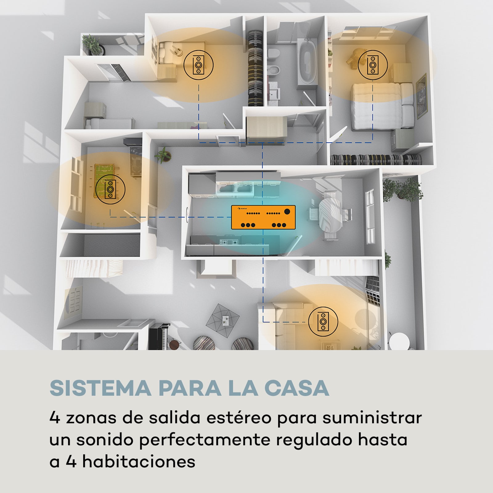 Compacto, potente y versátil: con el amplificador multicanal AMP-CD950 DG de auna tu equipo doméstico optimiza el sonido en hasta 4 habitaciones.