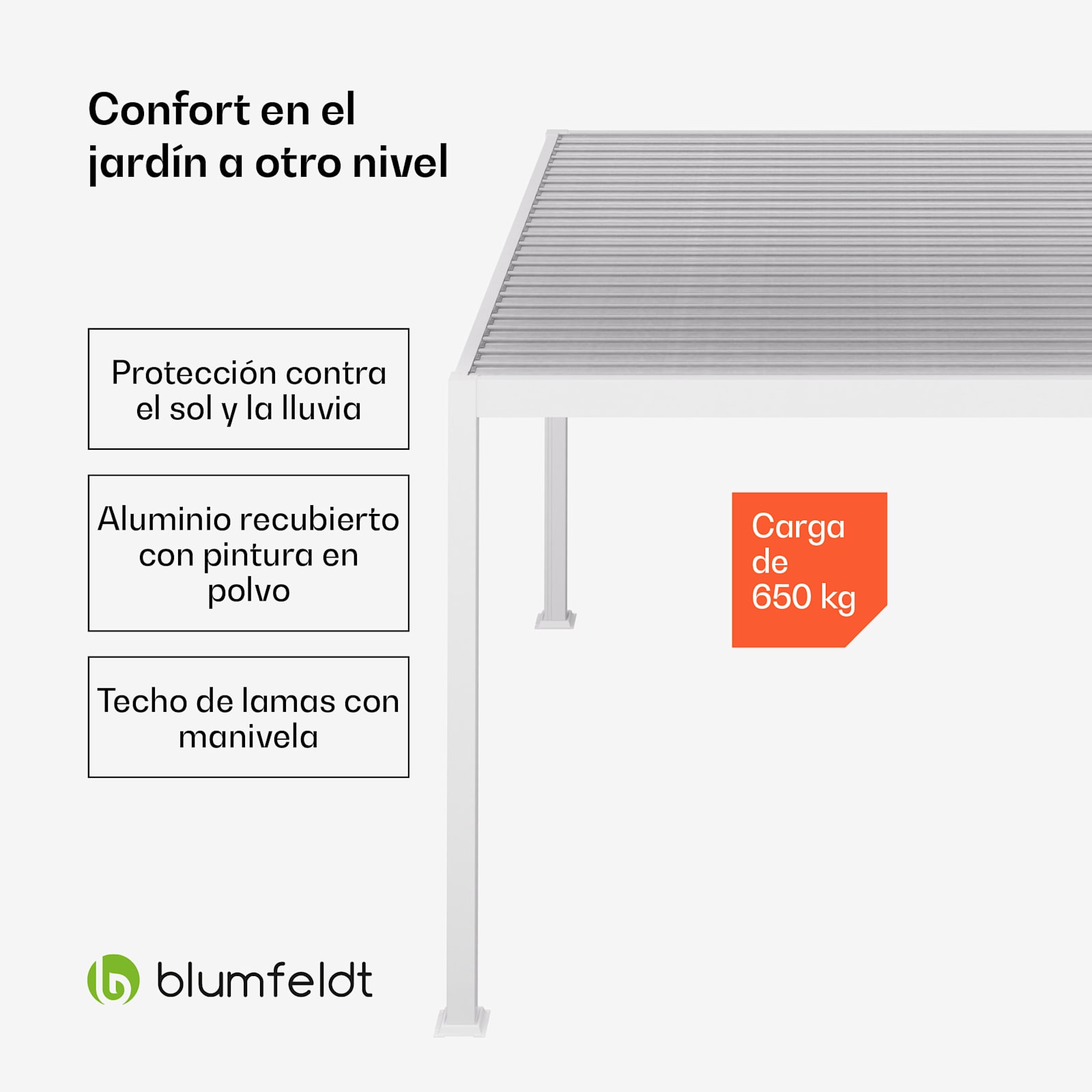 Con la Pérgola LuminaHaven de Blumfeldt , su rincón favorito del jardín se convierte en un lugar incomparable para relajarse. Transforme terrazas, paisajes de piscina o acogedoras zonas de estar en una zona de relajación llena de luz. Tanto si quiere disfrutar del sol puro como de un lugar a la sombra, el techo proporciona sombra y protección, mientras que el diseño al aire libre deja pasar el sol. El práctico techo de lamas puede abrirse y cerrarse en un abrir y cerrar de ojos mediante una manivela.