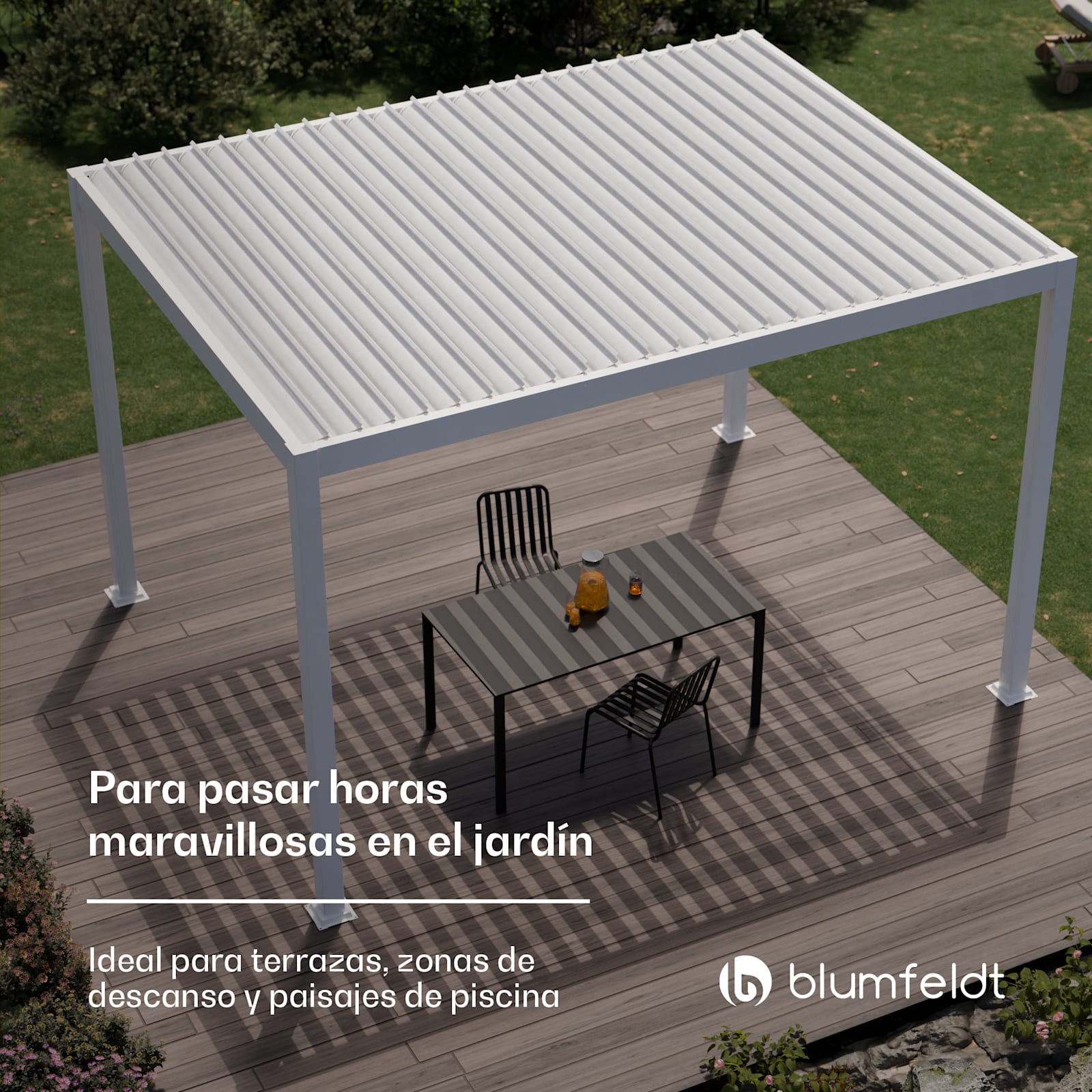 • Para los amantes del sol y de la sombra: techo de lamas regulable mediante manivela