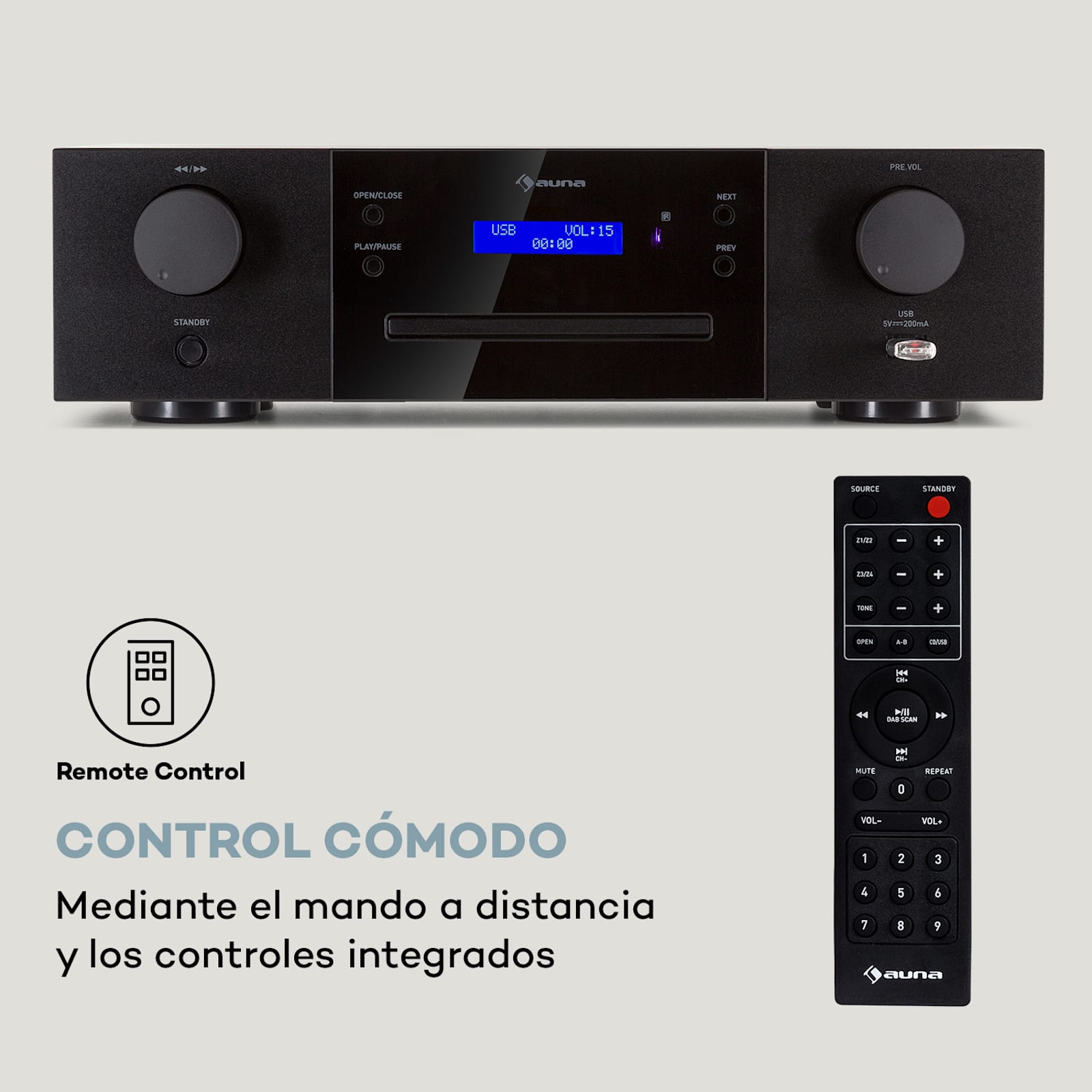 El clásico reproductor de CD CD-1000 DG de auna cuenta con ranura para CD retráctil y un práctico mando a distancia. Además de los CD de audio convencionales, reproduce los formatos CD-R, RW y MP3. Su panel de control dispone de un diseño claro desplegado en la pantalla LED. Asimismo, el CD-1000 DG cuenta con una ranura USB frontal de fácil acceso.