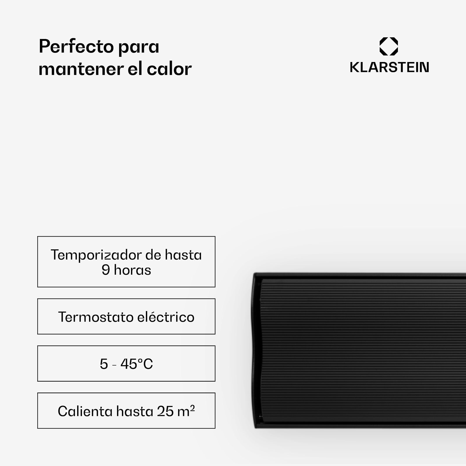 El ligero calefactor radiante eléctrico Cosmic Beam Plus XXL de blumfeldt se monta sencillamente en la pared o en el techo. Esto lo mantiene fuera del camino mientras emite rápida y eficazmente luz infrarroja de onda larga con 3000 W de potencia. La tecnología IR ComfortHeat utiliza el principio del calor solar. Calentamiento selectivo de objetos y personas iluminados sin que se produzcan desviaciones por calentamiento del aire. Gracias a su diseño, el Cosmic Beam Plus XXL pertenece al grupo de radiadores oscuros. Solo emite calor y no luz. Además, funciona de forma totalmente silenciosa y no levanta polvo, condiciones perfectas para las zonas sensibles al ruido y los alérgicos.
