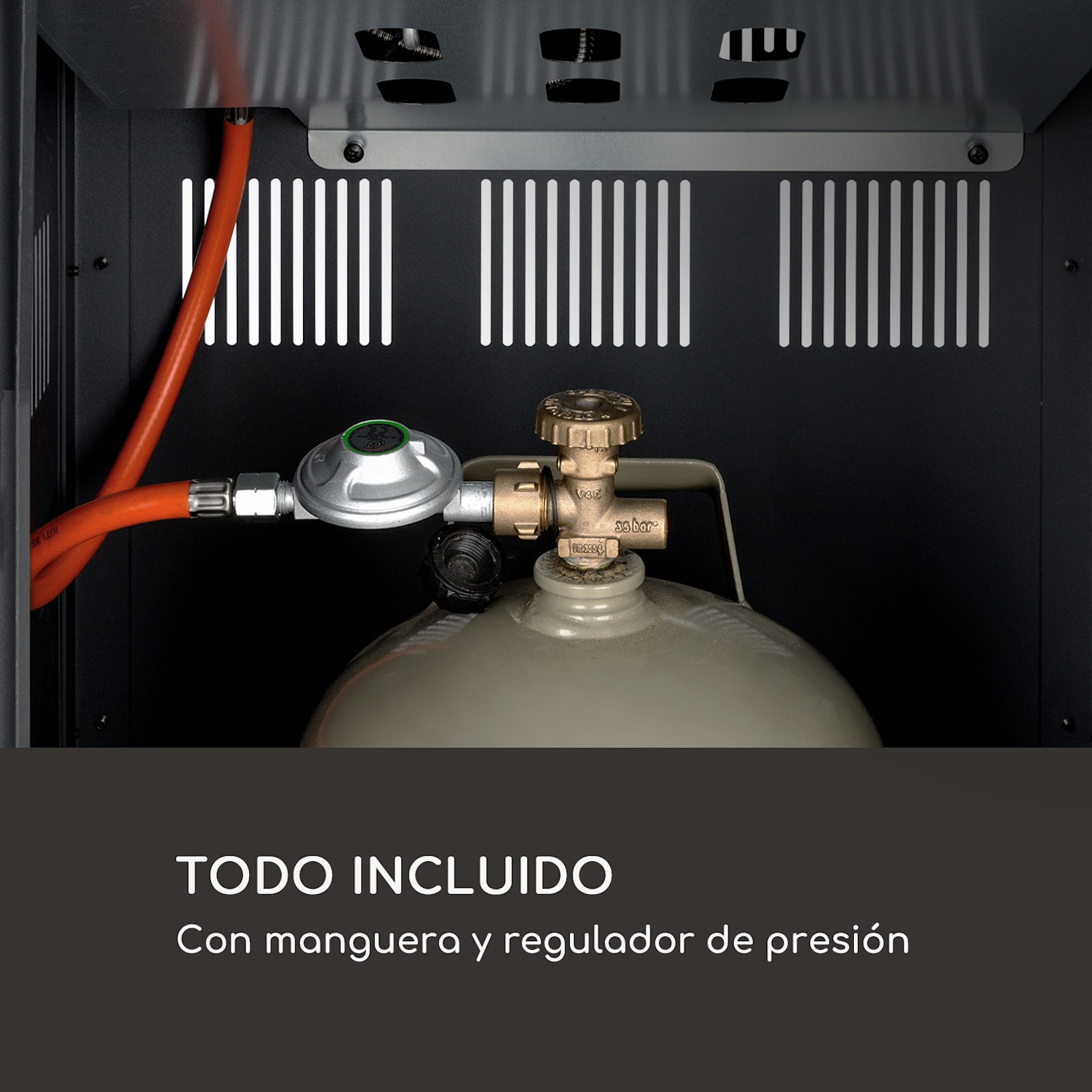 Por favor tenga en cuenta: la bombona de gas de la ilustración no es parte del volumen de suministro, esta sirve solo de ejemplo de aplicación.