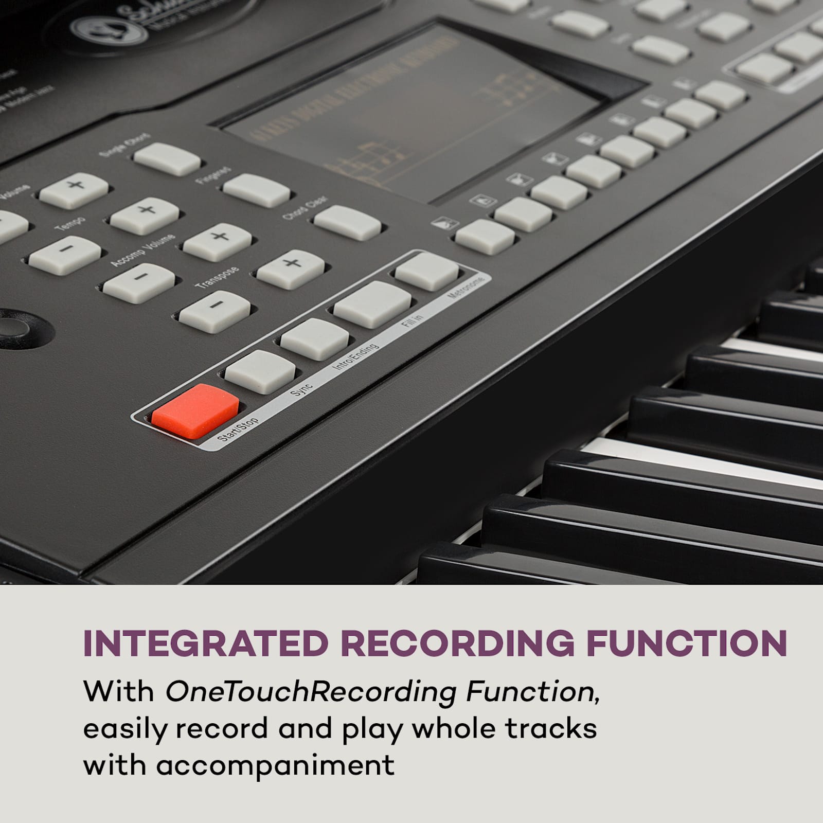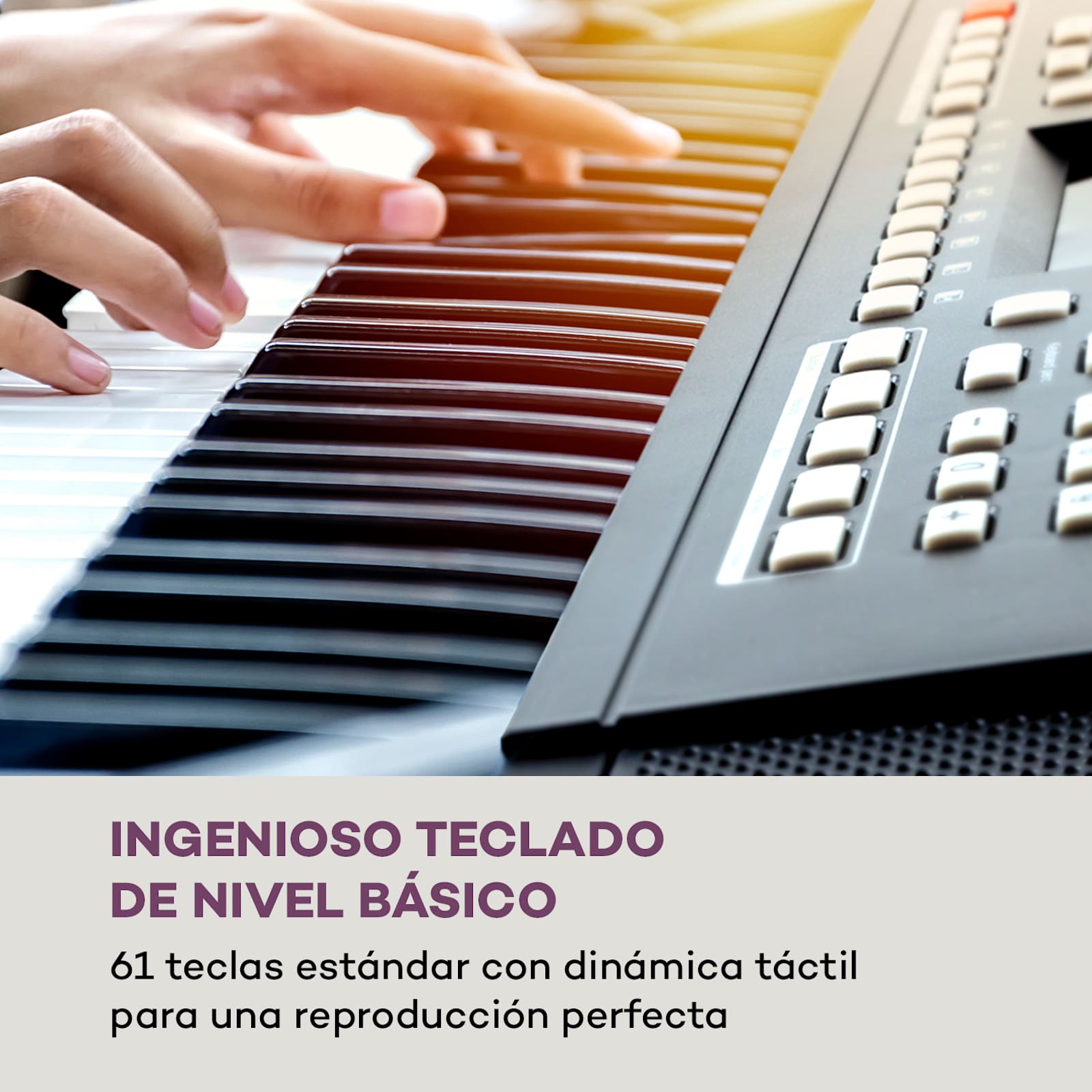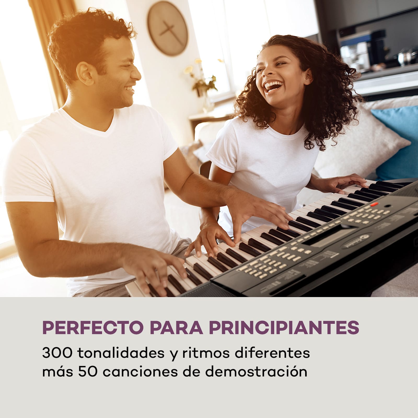 Cuenta con 61 teclas dinámicas responsables del espectro sonoro: ideal para tocar y practicar tanto melodías existentes como propias. En total cuenta con 300 tonos, 300 ritmos y 50 canciones demo, así como con un panel de percusión con ocho sonidos de tambor para dar rienda suelta a la creatividad y al entretenimiento. Además, cuenta con efectos opcionales como Sustain y Vibrato dan gran libertad a este teclado.