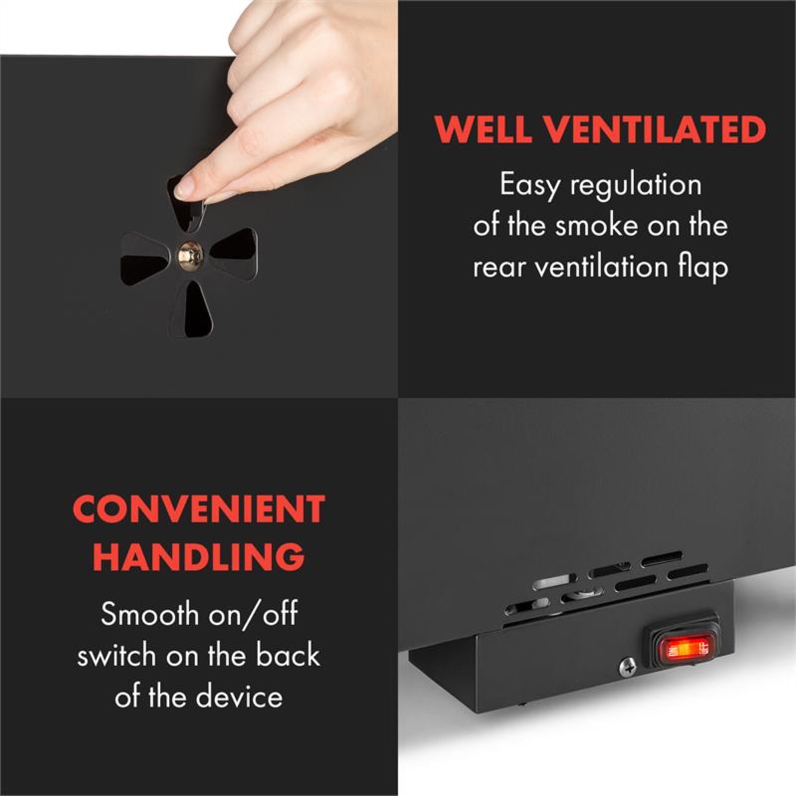 Señales de humo delicadas: cuando un humo aromático sale del ahumador Klarstein Flintstone Steel, el resultado será delicioso. En el humo especiado y discreto de la madera se convierten en delicados manjares carne, pescado y salchichas, pero también tofu o verduras.