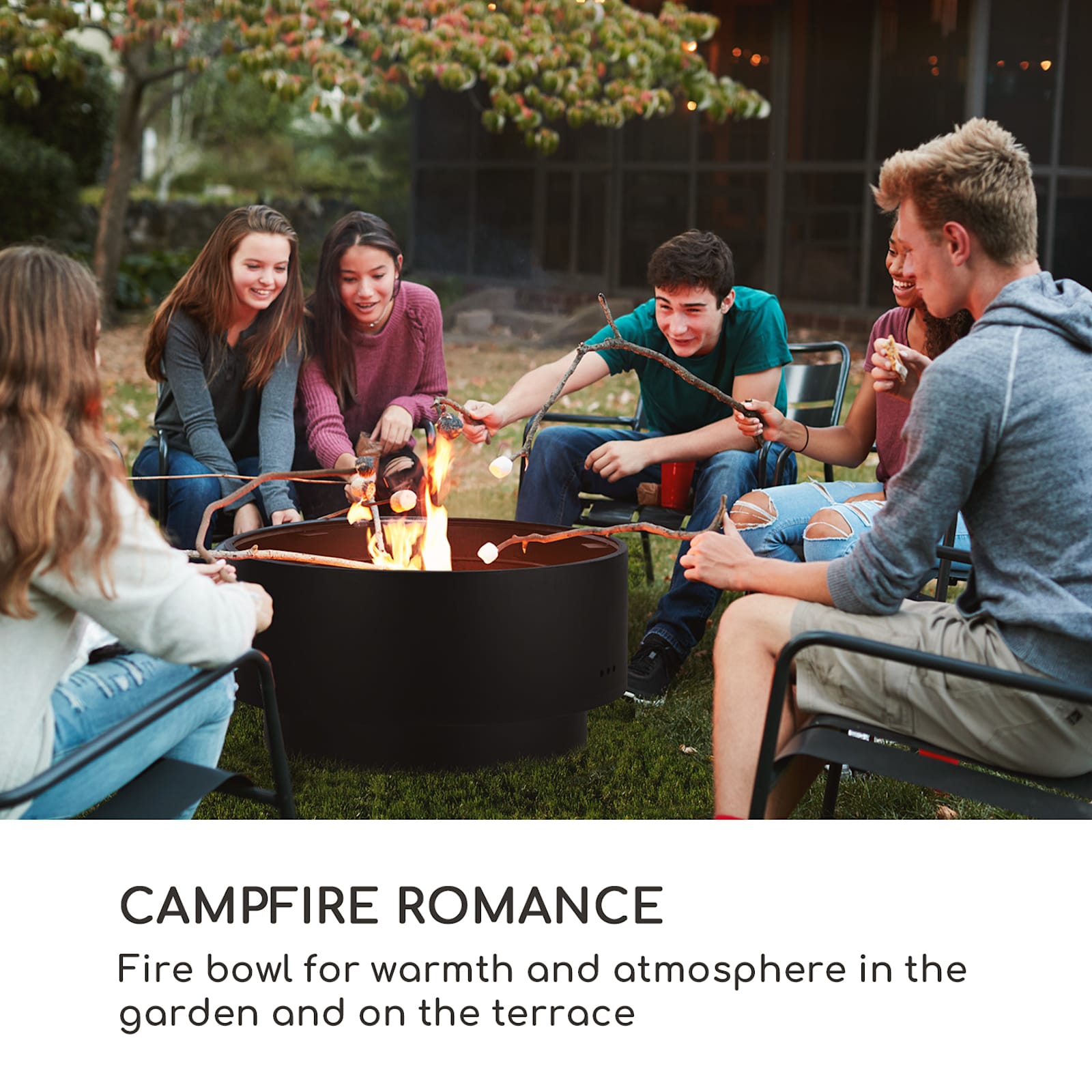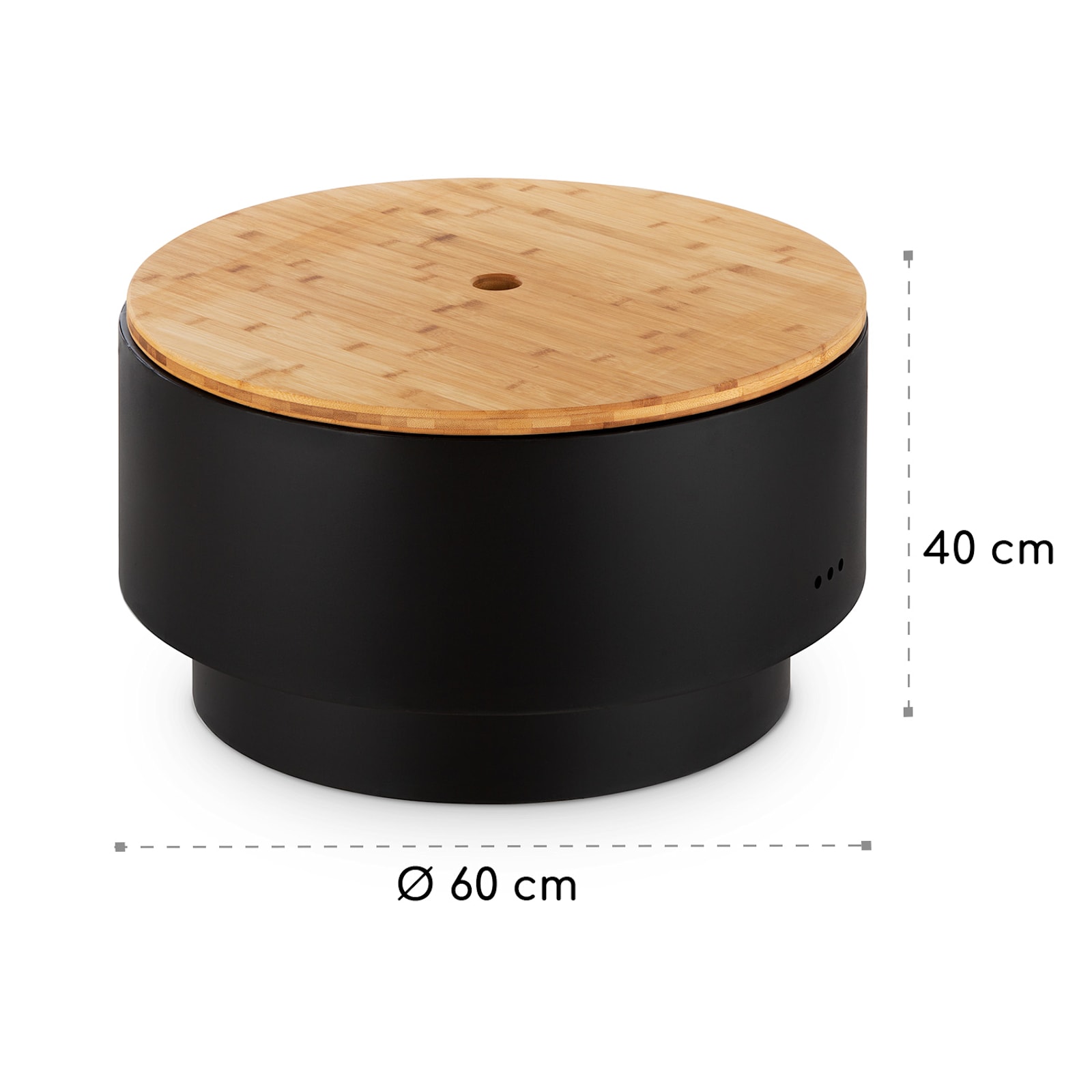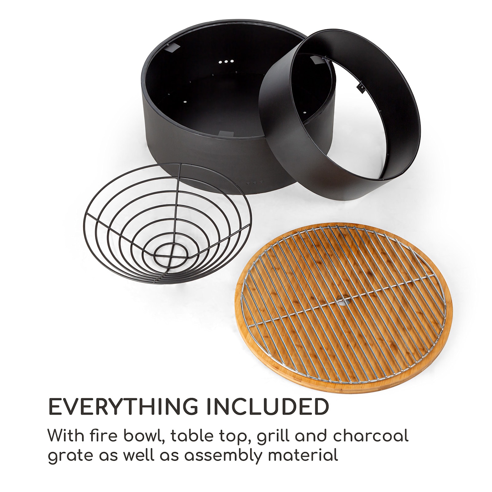 Disfruta de las tardes en el jardín o la terraza: con el brasero y parrilla Pompeji de blumfeldt es el triple de divertido. En el brasero de 60 cm de diámetro, los troncos, carbón vegetal o briquetas con llamas parpadeantes proporcionan un calor agradable y un ambiente de fogata. El robusto cuenco está fabricado en acero de 2,5 mm de espesor y presenta un color a prueba del fuego, por lo que es resistente a la intemperie. El brasero Pompeji se vuelve una delicia cuando se utiliza la amplia parrilla cromada de 56 cm. Simplemente hay que colocar la parrilla sobre el brasero y ya se puede disfrutar de una buena barbacoa. La base redonda de 48 cm de diámetro garantiza la estabilidad del Pompeji, ya sea durante la cocción o el uso del brasero. Sin embargo, también se puede usar el brasero Pompeji con el tablero de bambú suministrado y convertirlo en una elegante mesa de jardín. Su forma redonda y su elegante color negro se mezclan fácilmente con cualquier estilo de jardín o terraza.