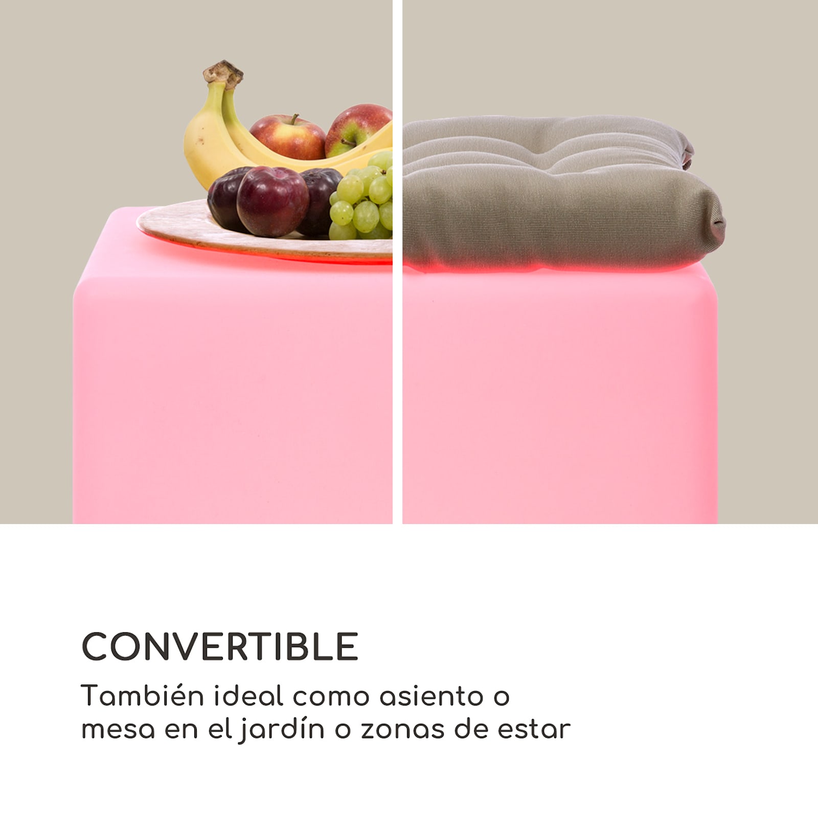 Con el cubo luminoso Shinecube XL de Blumfeldt, usted puede dar a su casa, terraza y jardín una iluminación ambiental que vale la pena ver. Cualquiera que sea su color favorito, el Shinecube XL lo tiene todo. Active los 16 LEDs de colores en el modo de luz de pie o utilice uno de los cuatro modos de cambio de color para que el cubo butaca brille. Una función de atenuación adicional aumenta aún más la posible variación y el efecto de ambiente – usted tiene cuatro niveles de brillo para elegir, desde el brillo romántico hasta las luminarias brillantes.