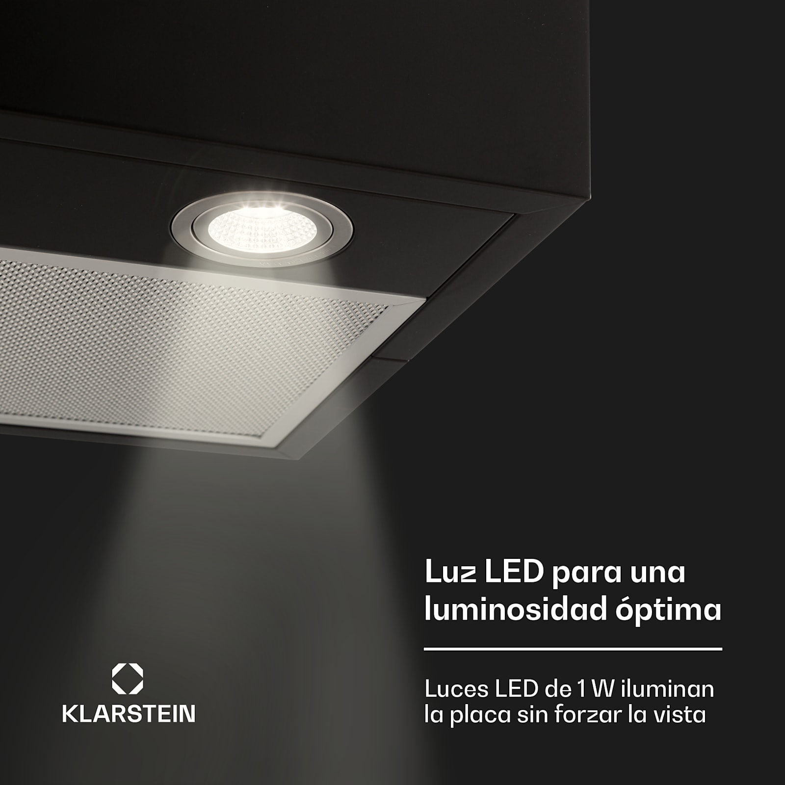 La campana extractora Structura de Klarstein: Atractiva, luminosa, potente y neutralizadora de olores en un solo aparato.