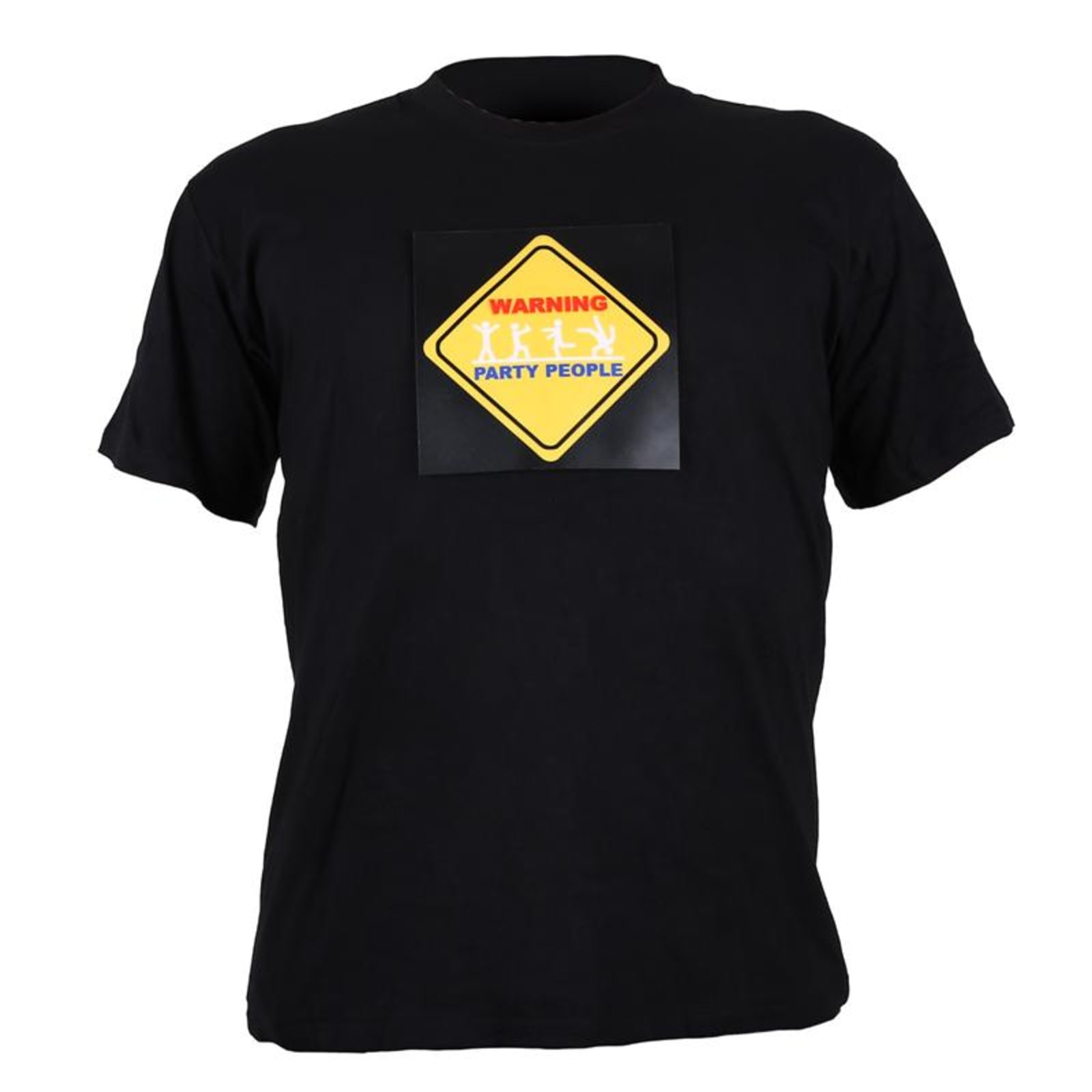 Gracias al panel de control, tendrás tu camiseta con luces LED siempre bajo control. Conectada por cables a una unidad de batería de refuerzo, la parte frontal de luces LED se enciende con la ayuda de un micrófono integrado que la ajusta al ruido ambiental. Esto permite que la luz LED se active o desactive a través del botón de ON/OFF, dependiendo de tu estado de ánimo y del ambiente de la fiesta.