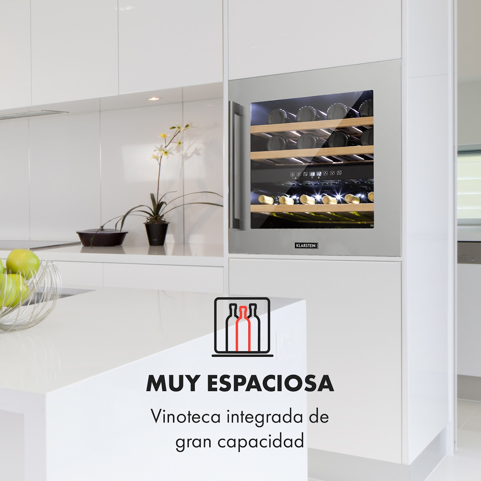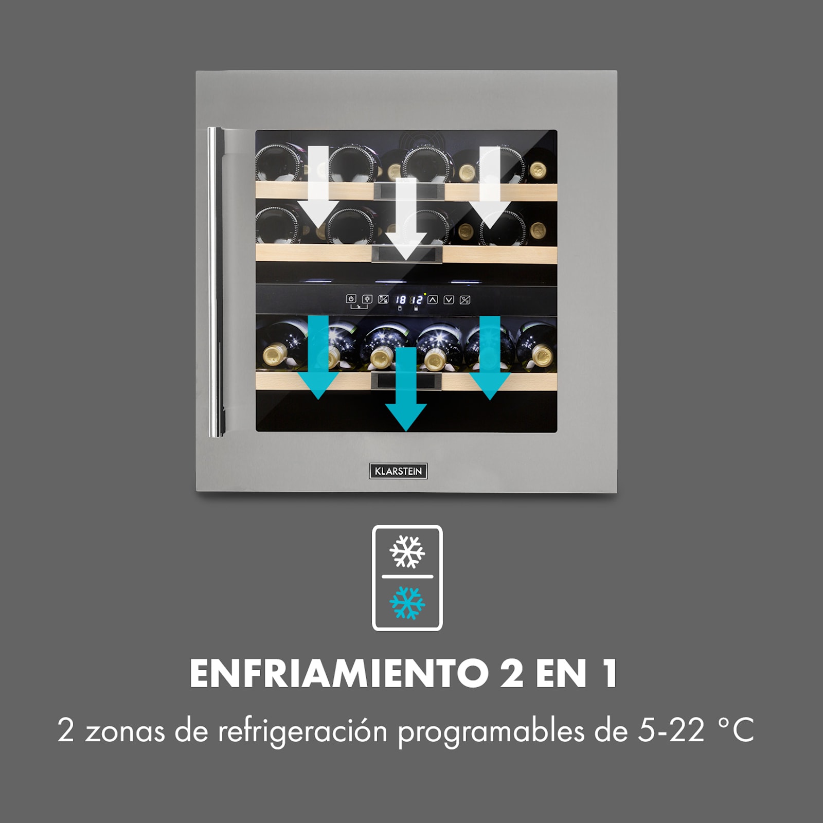 La vinoteca Vinsider 36 de Klarstein: ¡el almacenamiento óptimo del vino garantiza el mejor placer de consumo! Gracias a la vinoteca de 2 zonas de refrigeración, puedes conservar 36 botellas del mejor vino a la temperatura ideal y deseada para su consumo, almacenarlas durante mucho tiempo y presentarlas de forma exquisita. La puerta de cristal con ventana panorámica y baldas con tiras para anotar el tipo de vino garantizan una excelente presentación de conjunto, mientras que las botellas están óptimamente protegidas de las vibraciones y de la luz.