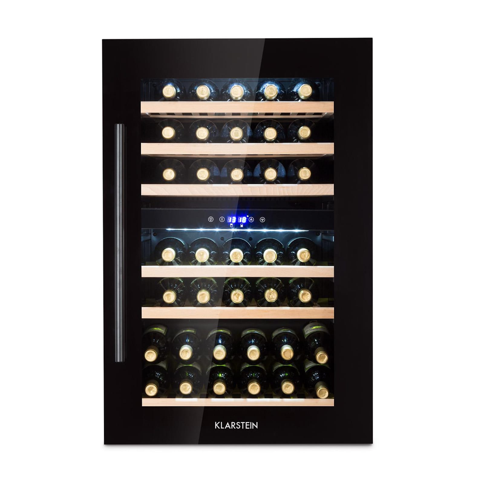 Gracias al Klarstein Vinsider 41 Built-in Duo Onyx Edition frigorífico de vino, tu vino puede desarrollar su mejor aroma gracias a la refrigeración adecuada. Con el regulador de temperatura, es posible establecer temperaturas entre 5 y 22 °C en el frigorífico de vino de 2 zonas. Así, los vinos blancos y tintos se enfrían perfectamente en ambas zonas de refrigeración al mismo tiempo, ya sea para las últimas horas antes de la cena o para los próximos meses. Tu vino puede almacenarse protegido de vibraciones y de la luz.